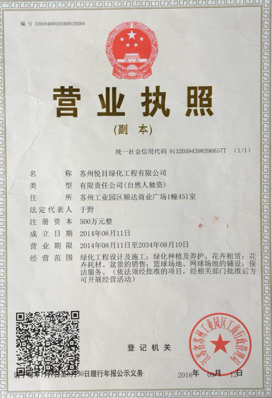 • 悅目綠化為蘇州長期合作的500多家中外企事業單位、酒店、 及蘇州知名企業提供植物租賃、綠化養護和鮮花花藝服務。 多年評為“城市園林綠化重點企業”。